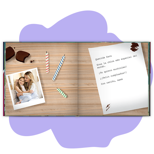 Puedes incluir una foto en png o jpg y escribir una dedicatoria, gratis, que se imprimirán al final del libro, para hacerlo aún más especial.