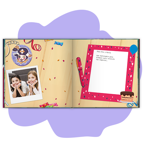 Puedes incluir una foto en png o jpg y escribir una dedicatoria, gratis, que se imprimirán al final del libro, para hacerlo aún más especial.