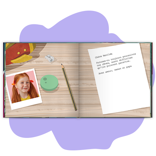 Vous pouvez inclure une photo en png ou jpg et écrire une dédicace, gratuitement, qui sera imprimée à la fin du livre, pour le rendre encore plus spécial.