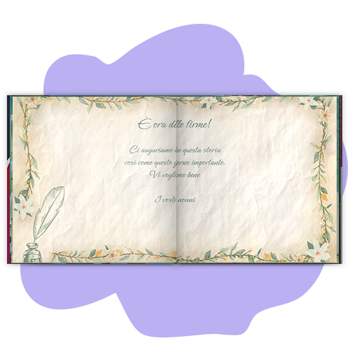 Nel libro c'è lo spazio per 5 foto e 2 fogli per le firme o i messaggi degli invitati.