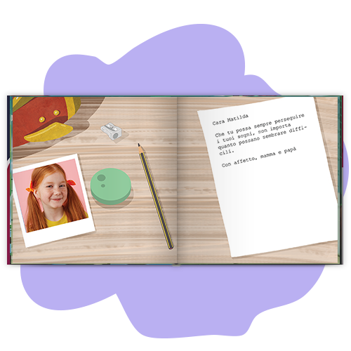 Puoi includere una foto in formato png o jpg e scrivere una dedica, gratis, che sarà inserita alla fine del libro, per renderlo ancora più speciale.