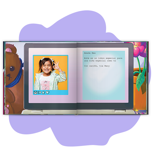 Puedes incluir una foto en png o jpg y escribir una dedicatoria, gratis, que se imprimirán al final del libro, para hacerlo aún más especial.